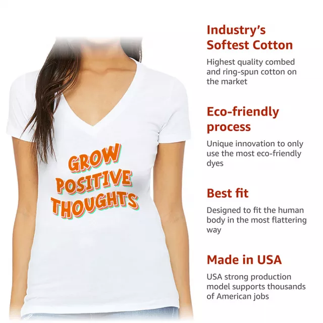 Grow Positive Thoughts Women’s V-Neck T-Shirt – Inspirational V-Neck Tee – Quote T-Shirt