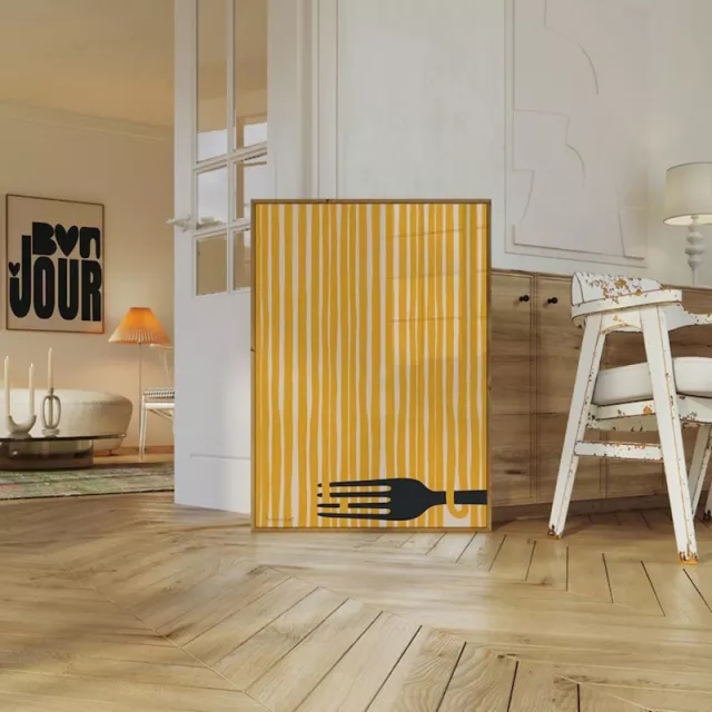 Whether you’re updating a modern dining room, jazzing up your kitchen, or creating a retro café vibe in your home office, this food-themed artwork is a delightful touch. Its warm tones and classic design create an inviting atmosphere, perfect for spaces where people gather to enjoy meals and conversation.