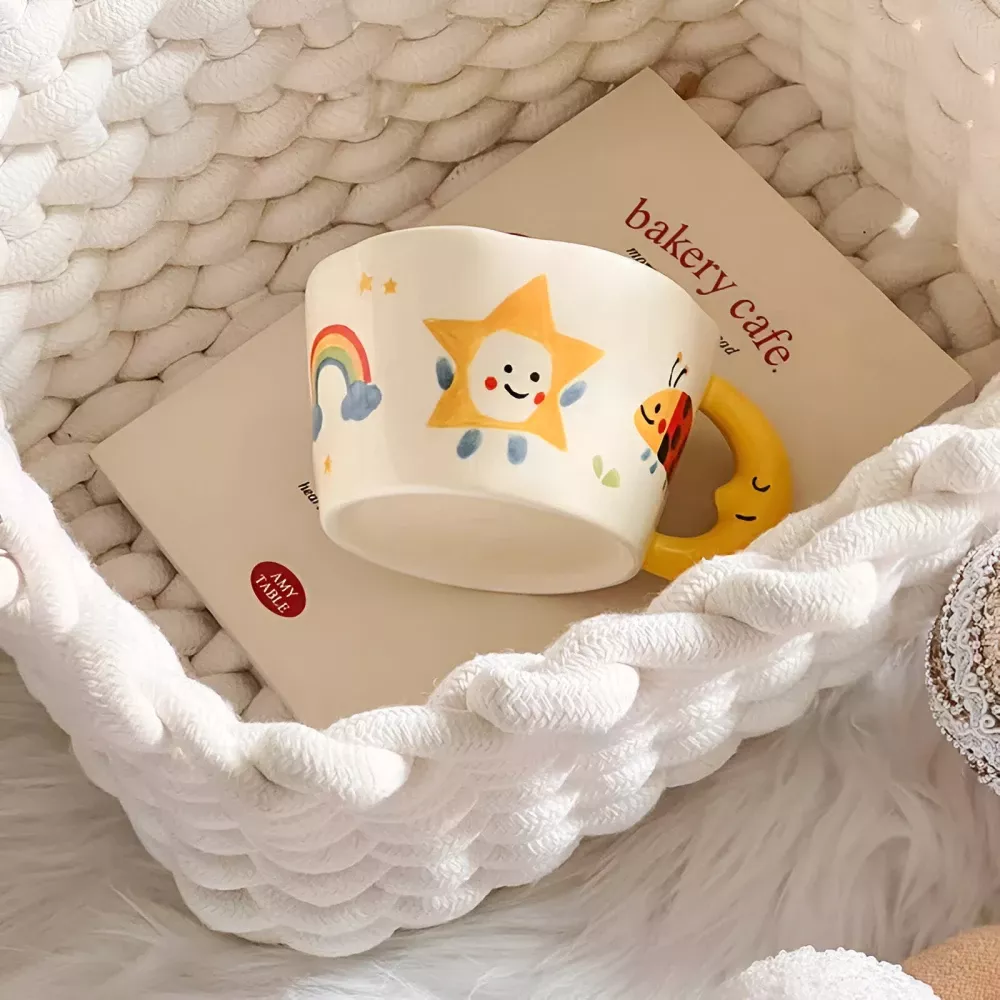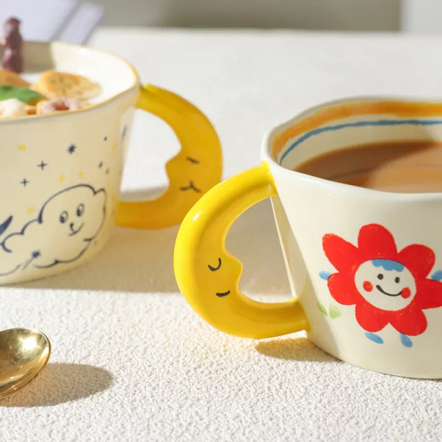Its playful yet elegant design makes it stand out from ordinary mugs. The hand-painted ceramic exterior adds a natural, artistic texture that feels both cozy and refined. The moon-shaped handle isn’t just eye-catching—it’s a sweet reminder to slow down and enjoy the little things in life.