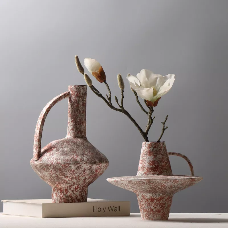 Designed to capture both function and form, this ceramic vase features a classic rounded silhouette with an elegant side handle that echoes traditional Chinese craftsmanship. The smooth glazed finish enhances its vintage appeal while adding a contemporary twist. Perfect for holding fresh blooms, dried flowers, or simply standing alone as a sculptural accent.