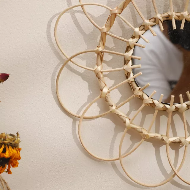 Use this decorative mirror year-round to create a calming and creative atmosphere. It’s especially perfect for spring and summer decorating, or anytime you want to refresh your home with a light and airy feel. Whether you’re styling a new space or adding the finishing touch to an existing one, this rattan mirror brings balance, nature, and beauty to your walls.
