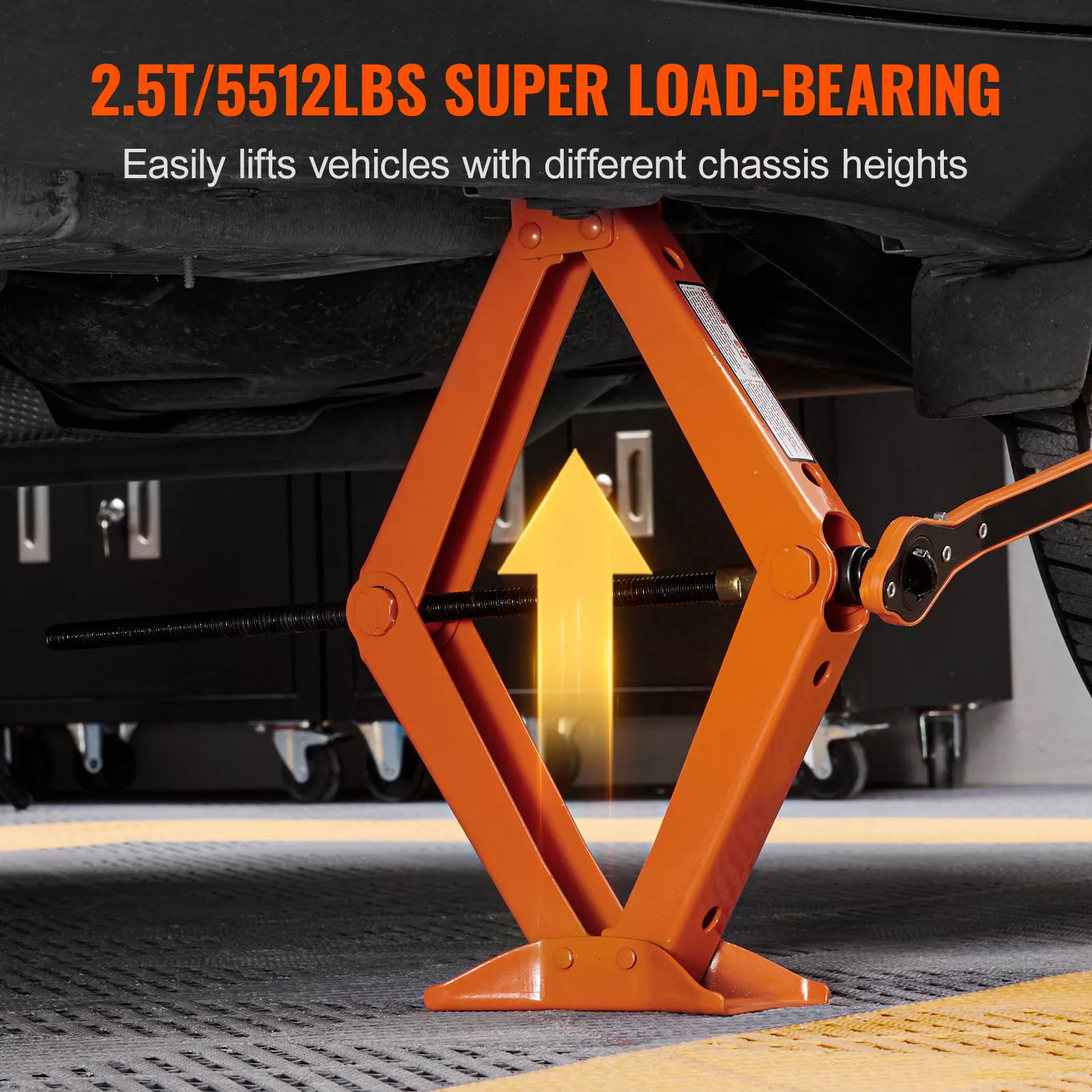 Experience hassle-free tire changes and maintenance with this heavy-duty scissor jack designed to handle up to 2.5 tons (5512 lbs) with ease. Whether you drive a sedan, coupe, SUV, or hatchback, this jack offers a wide lifting range from 3.7 inches to 17.1 inches, making it perfect for raising low chassis cars or taller trucks effortlessly. Its sturdy construction guarantees you a safe and stable lift every time you need it.