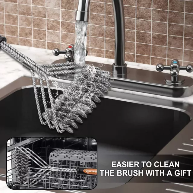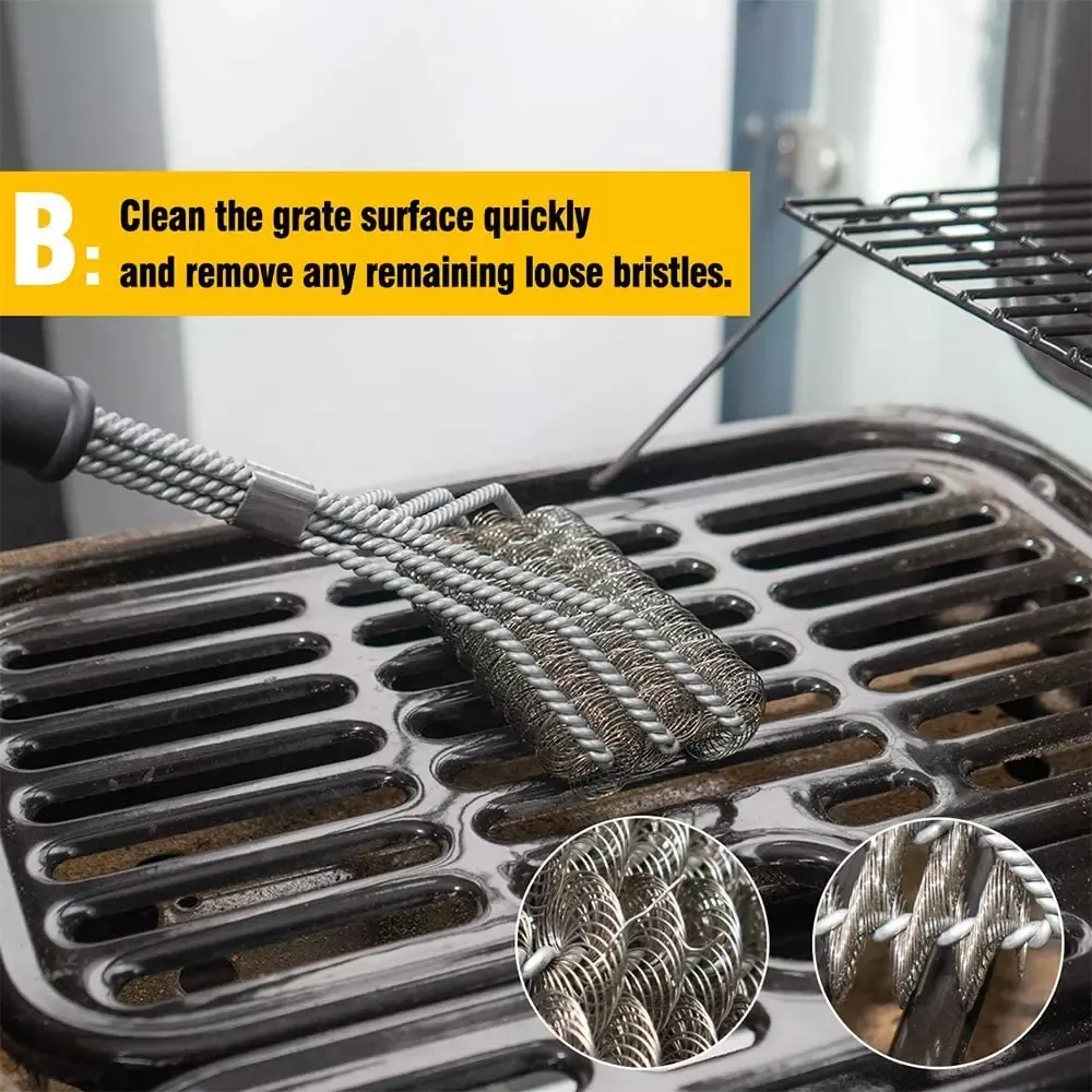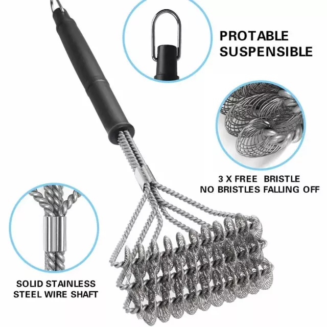 This isn’t just another grill brush. It’s a heavy-duty tool designed for serious BBQ lovers. The three-brush head design reaches into every crevice, cutting your cleaning time in half. Plus, the thick stainless steel bristles don’t shed, bend, or rust—ensuring a longer lifespan than standard brushes. The ergonomic handle reduces hand fatigue and gives you a firm grip even when things get greasy.