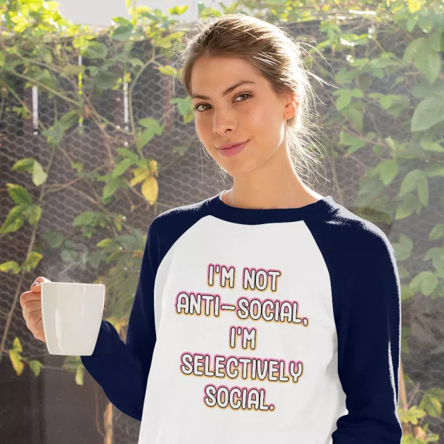 I’m Not Anti-social Baseball T-Shirt is proudly made with 7x less water than average manufacturers,