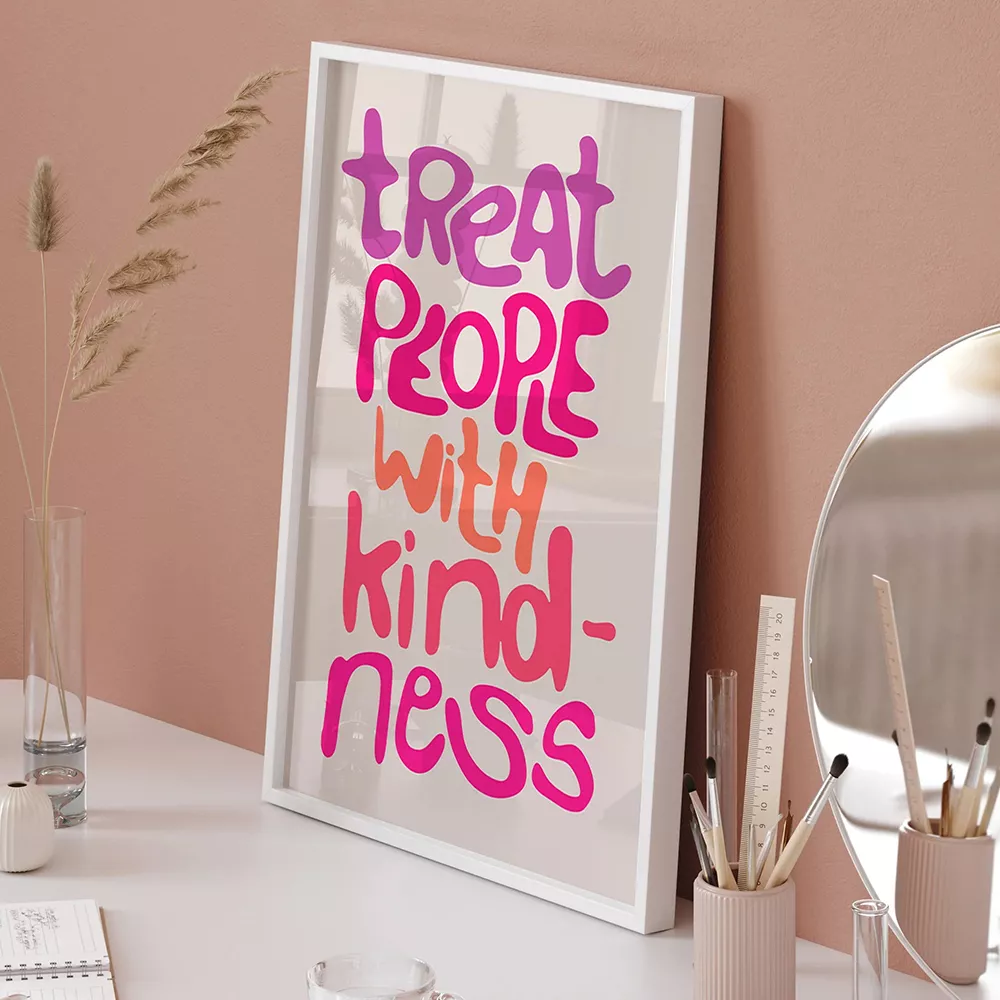 Words have power—let this simple quote speak volumes in your home. Whether you’re refreshing your decor or searching for a meaningful gift, this “Treat People With Kindness” print is a thoughtful, feel-good choice. Let kindness lead the way.