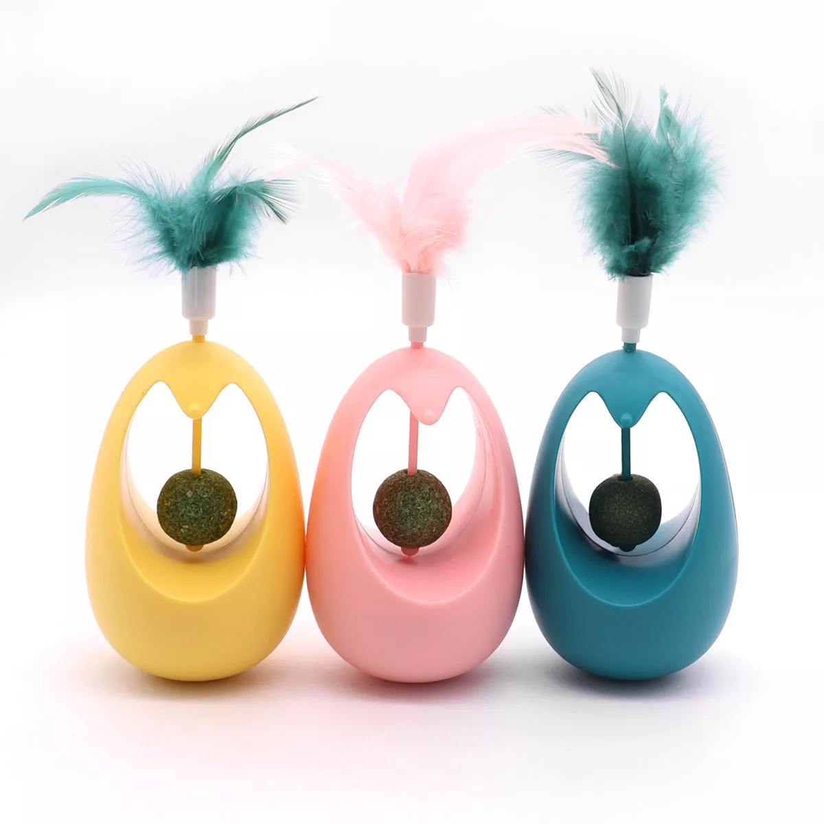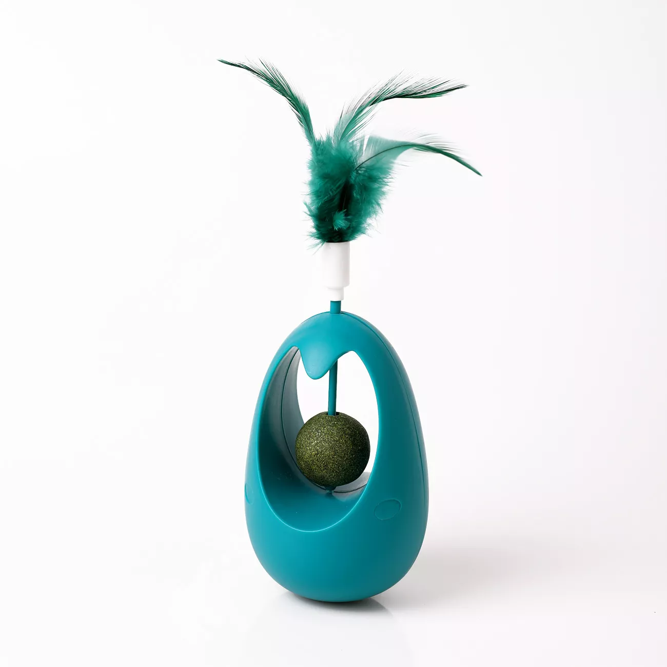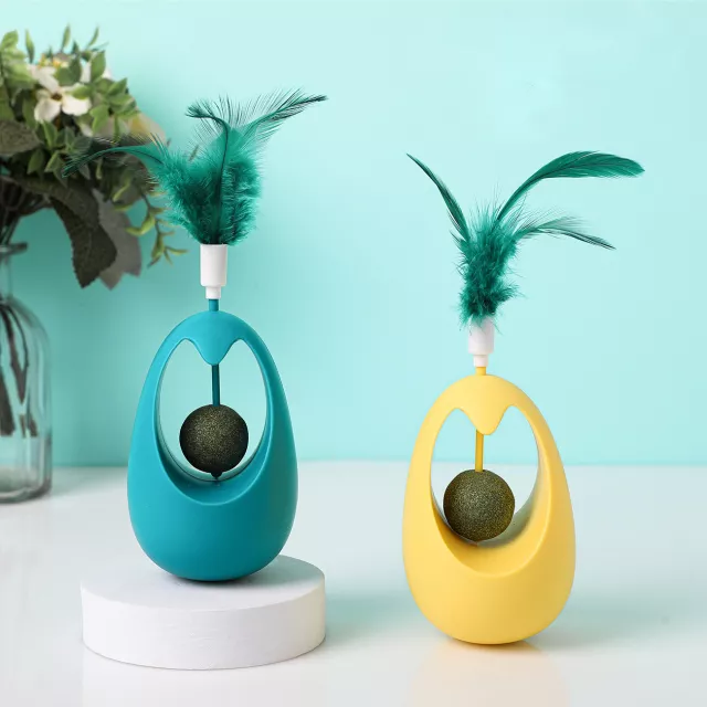 this thing rocks!! i got two kitties who are picky as heck when it comes to their playthings but they took to this one instantly the feather adds that extra bit of intrigue while the chew ball helps clean their teeth as they gnaw on it...and let’s not forget about that irresistible catnip scent! best part? i can kick back with my coffee while they're busy playing..definitely worth every penny