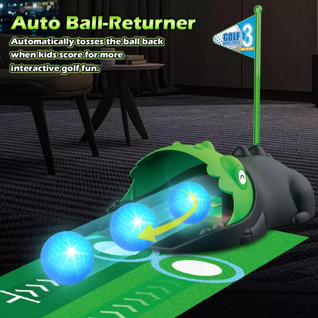 Kids Toy Golf Set with LED Ball Return & Adjustable Clubs