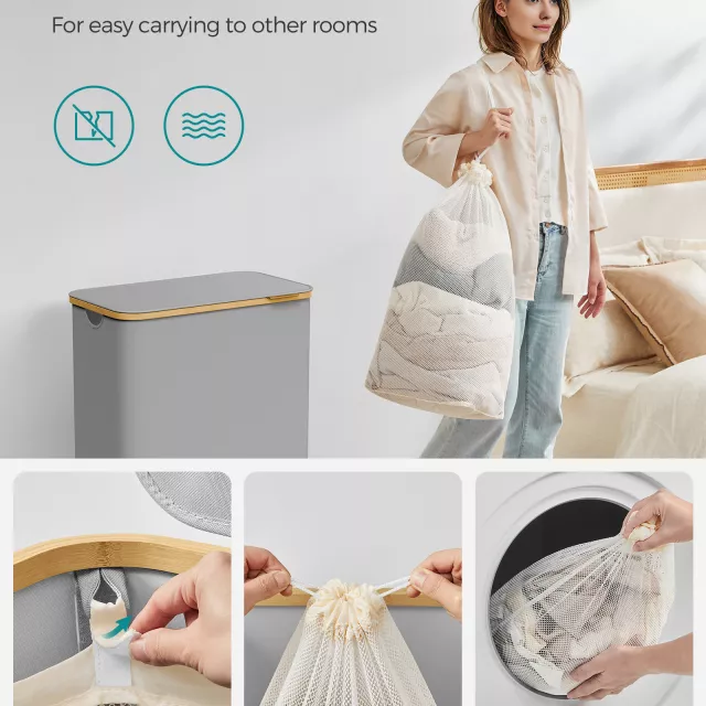 This laundry basket is perfect for busy households that value both functionality and style. Whether placed in a bedroom, bathroom, or laundry area, it keeps dirty clothes organized and out of sight. The washable mesh liners add extra convenience by allowing you to transport and wash sorted laundry with minimal effort.