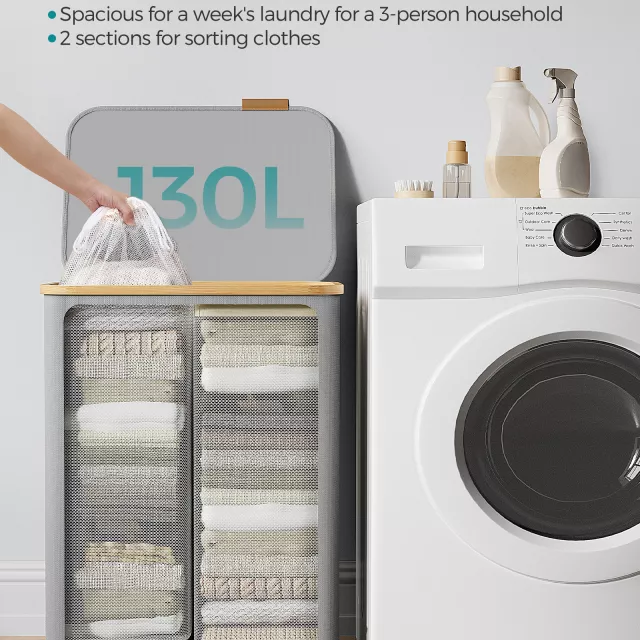 Make laundry day easier and more organized with this large-capacity 2-section hamper. Its smart design, durable materials, and thoughtful features make it a must-have for keeping your home neat and clutter-free. Add this elegant, practical hamper to your home and enjoy a smoother laundry routine!