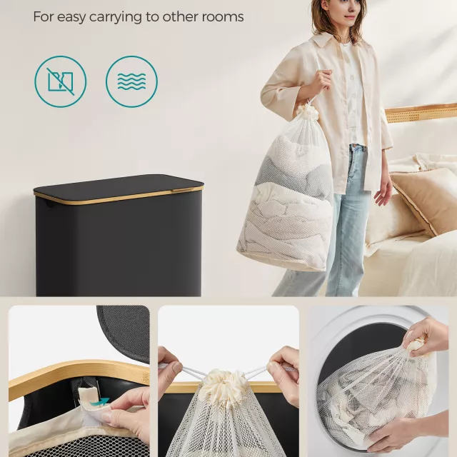 This laundry hamper is ideal for those looking to bring order and efficiency to their laundry routine. It’s perfectly sized for family use, helping you manage daily laundry loads without hassle. The removable liners make transporting clothes to the washer simple and mess-free, while the foldable design allows easy storage when needed.