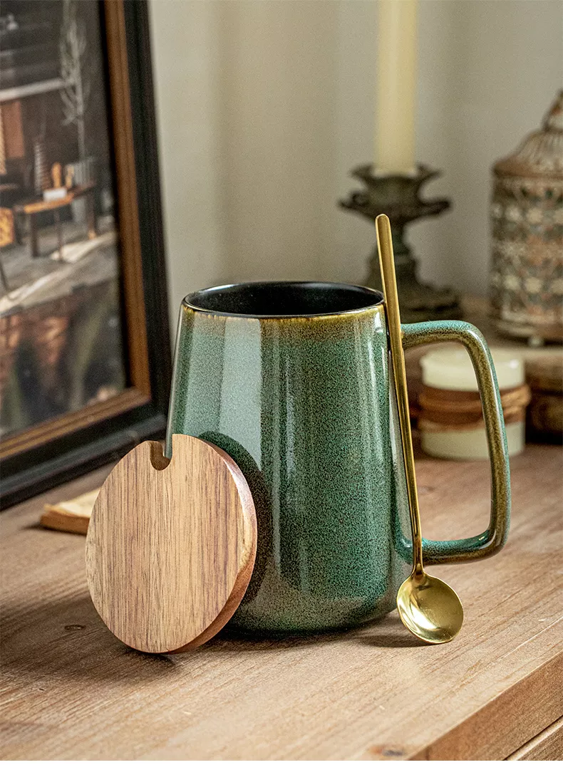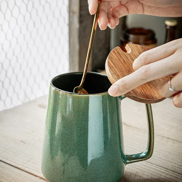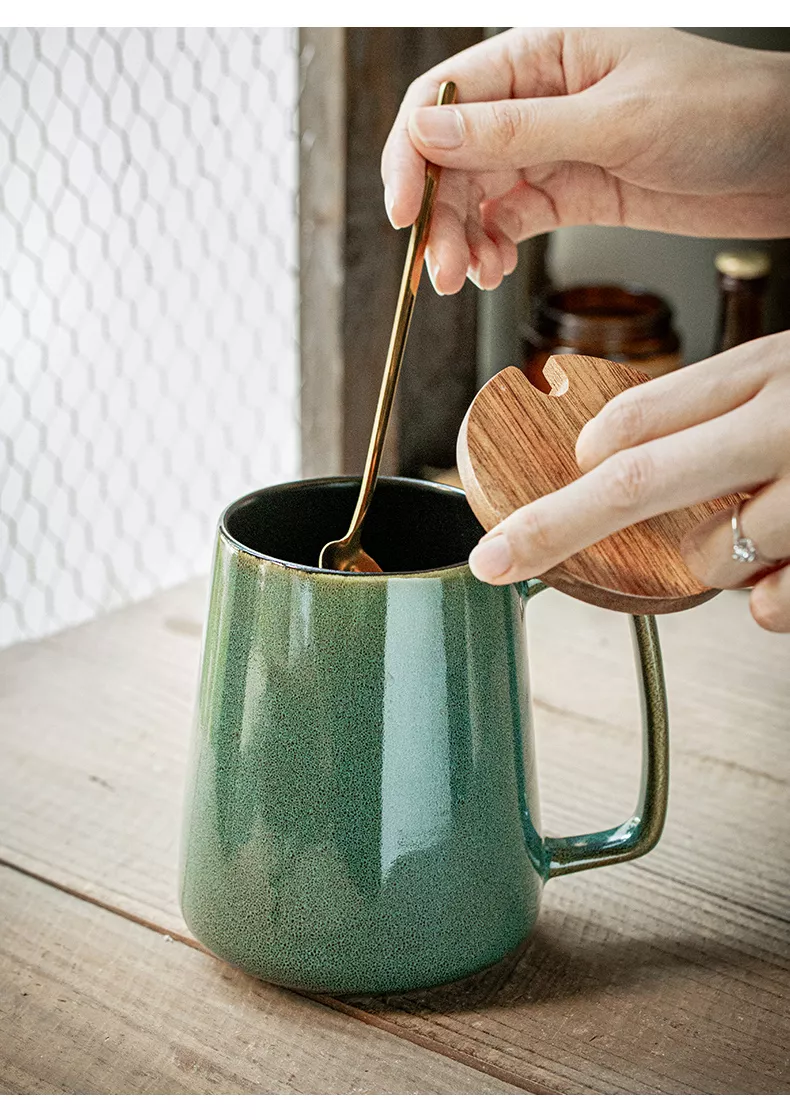 The blend of functionality and elegance. The ceramic material holds heat well, the wooden lid adds natural beauty while keeping your drink warm, and the included spoon offers a complete drinkware experience. Its minimalist design makes it a thoughtful gift for friends, coworkers, or anyone who appreciates a good cup with a lot of style.