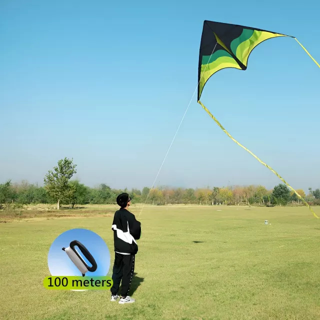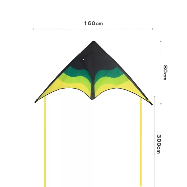 Crafted from durable polyester and reinforced with a glass fiber frame, this Delta kite is built to last through countless windy days. Measuring a generous 63 x 31 inches with a striking 118-inch tail, it’s big enough to make a bold statement in the sky but light enough for anyone to launch with ease. Its bright green, yellow, and pink colors make it easy to spot against any backdrop, ensuring you never lose sight of the fun.