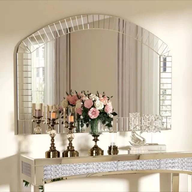 Transform your living space with the timeless charm of this Large Silver Arched Wall Mirror. Designed with a graceful arched silhouette and a shimmering silver frame, this Venetian-style mirror brings an upscale, decorative touch to any room. Whether hung above a console table, in a hallway, or as a centerpiece in your living room, this mirror reflects light beautifully, creating the illusion of space and adding a glamorous ambiance to your home decor.
