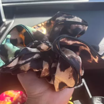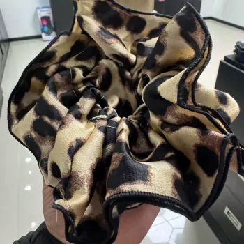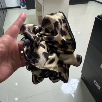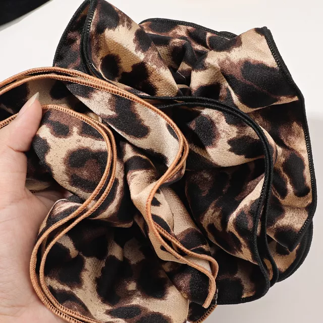 after trying many hair ties for my thick hair, this scrunchie stands out for its combination of softness, strength, and attractive design. the fabric is incredibly gentle on my scalp and strands, preventing breakage and discomfort even after hours of wear. the elastic stretches easily to accommodate thick ponytails and buns without feeling too tight or slipping loose during the day. what i love most is that it doesn’t leave dents or kinks in my hair, allowing me to wear different styles throughout the day without worrying about marks. the leopard print adds a bold and fashionable flair that elevates even simple hairstyles. the scrunchie’s durability is impressive—it maintains its shape and elasticity after repeated use and washing. it has become a staple in my hair accessory collection and is perfect for workouts, casual days, or dressing up.