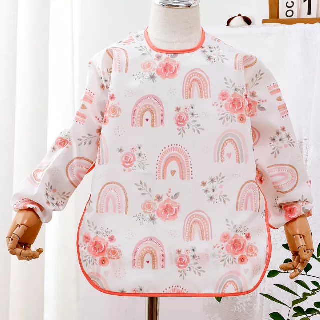 This full-coverage bib is made from lightweight, waterproof polyester, making it easy to wipe clean or toss in the wash after messy moments. The long sleeves and secure fit provide extra protection against spills, splashes, and stains, while the breathable fabric keeps your little one comfortable from the first bite to the last.