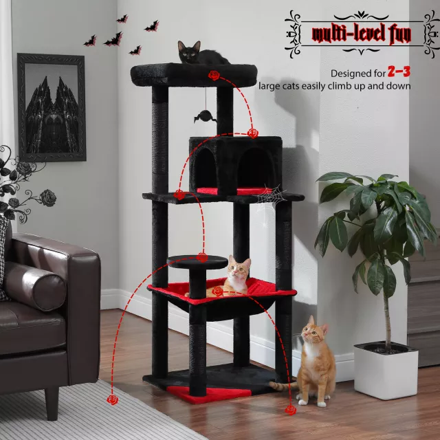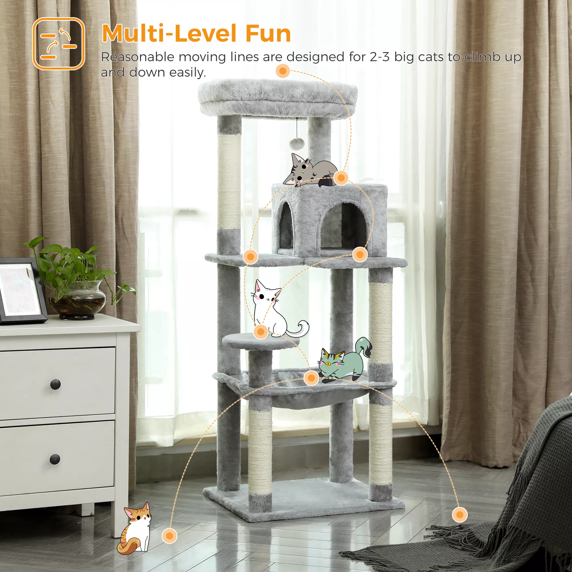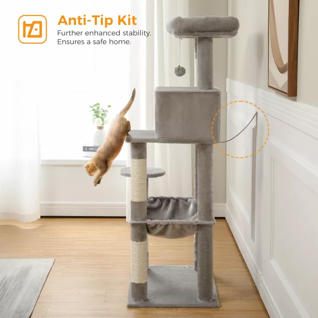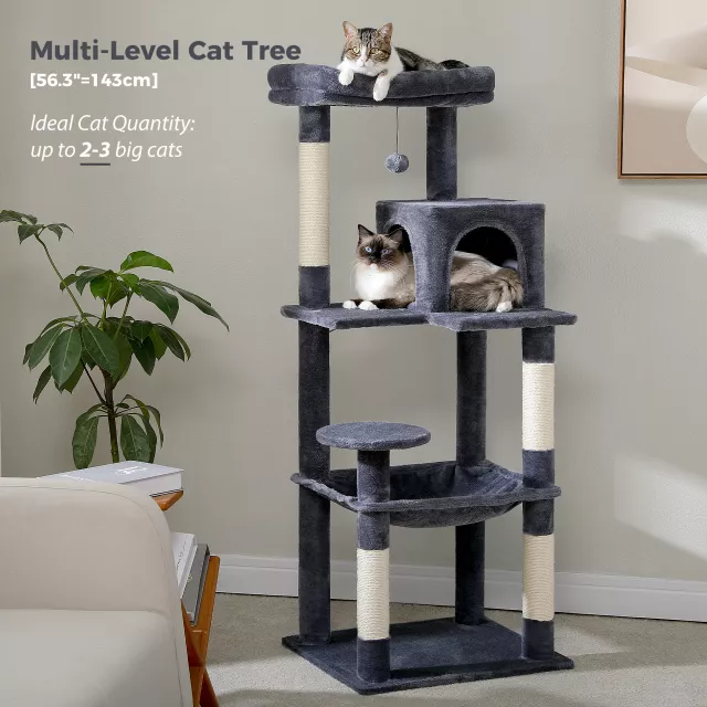 Designed with households that have one or multiple cats in mind, this elegant cat tower blends functionality with refined design. Whether it’s a morning nap in the oversized hammock, a playful climb to the top perch, or a quick scratch on the durable sisal posts, your feline companions will stay engaged and content all day long.