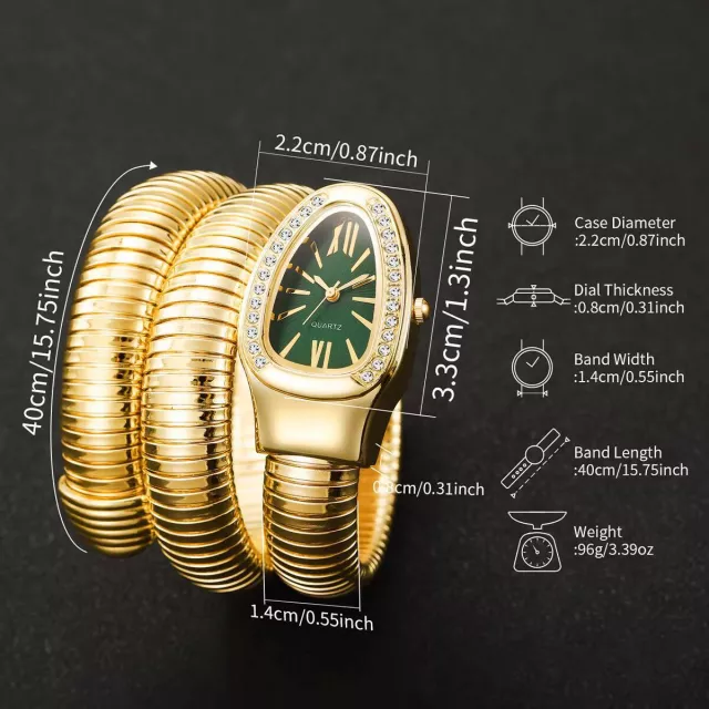 • Chic and Unique Design: Snake-shaped wrap bracelet style turns your watch into a luxurious statement piece.