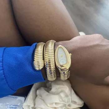 Turn heads and elevate your accessory game with this stunning **Luxury Snake Wrap Rhinestone Watch for Women**. Designed to resemble a graceful snake wrapping around the wrist, this fashion-forward timepiece combines elegance and edge in one dazzling statement. The sleek gold-tone bracelet glistens with rhinestone accents, adding just the right touch of glamour to both casual and dressy outfits. Whether you’re heading out for a special evening or simply dressing up your everyday look, this unique watch offers the perfect blend of fashion and function.