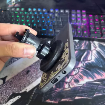 This little gadget is just too good! The magnetic force on this thing, wowza! Keeps my phone rock solid even when I'm off-roading. Plus, the carbon fiber look? Sleek and tough as nails!