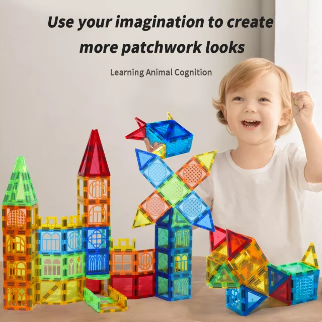 Ready to build something amazing? Let your child’s creativity shine and add this magnetic building blocks set to your cart today. Watch their ideas take shape in colorful, 3D magic!