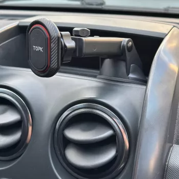 It’s incredibly easy to use: attach the metal plate to your phone or case, snap it to the magnetic surface, and you’re good to go. Thanks to its 360° rotation, you can instantly switch between portrait and landscape views for optimal visibility. And with its compact cable clip design, it helps keep your car neat and your charging cables tidy.
