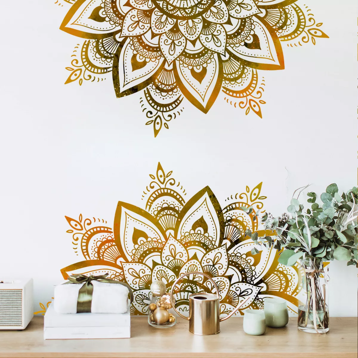 • Design: Flat mandala lotus pattern with boho-inspired details