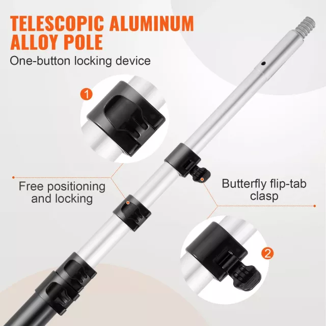 Built with 8 lightweight yet durable aluminum alloy poles, this saw extends from 7.3 feet to an incredible 27 feet. Tackle high branches or detach the handle to use it as a hand-held saw for shrubs and lower limbs. The razor-sharp carbon steel blade features a non-stick Teflon coating to cut cleanly through thick branches without jamming. Plus, the included Mn steel scissors and pulley system make quick work of smaller twigs and leaves. Safety and convenience are key, with a protective sleeve and storage bag included to keep everything secure and organized.