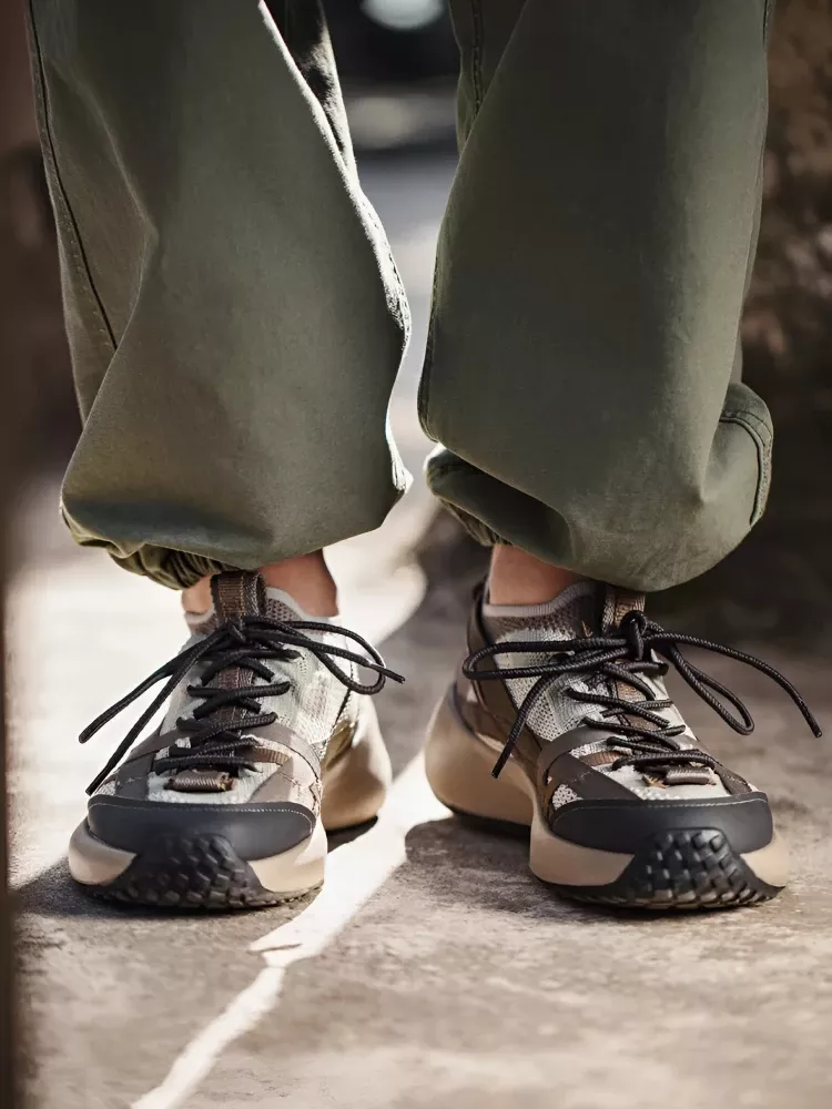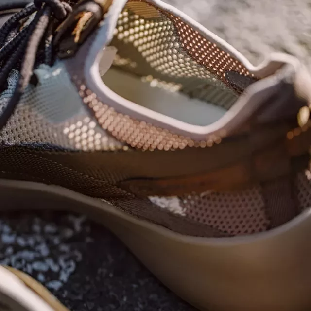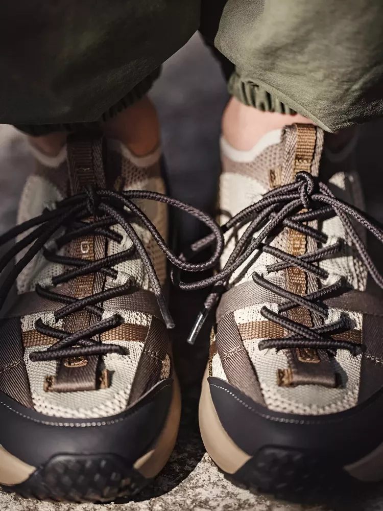 • Breathable Textile Upper: Keeps feet cool and dry with a layered patchwork of fabric and nylon straps.
