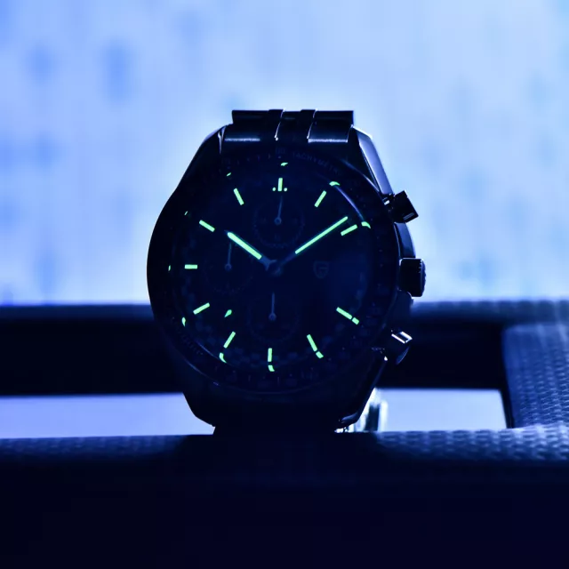 This watch is a masterpiece! The luminous hands make it easy to tell time even in low light. Plus, the chronograph and calendar functions are super handy.