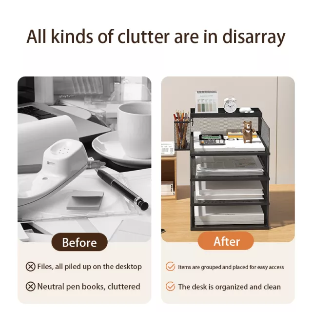 As someone who values organization and tidiness, this multi-layer storage rack has been a godsend. Its vertical layout allows me to easily find what I need without rummaging through piles of paperwork. And the best part? It doesn't take up too much space on my desk – leaving room for more important things like coffee mugs and family photos!