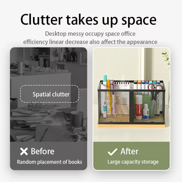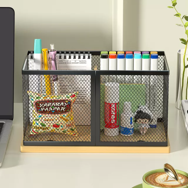 this organizer has become an essential part of my workspace thanks to its practical and stylish design. the metal mesh interior provides durable and breathable storage for all my pens, pencils, and office tools, keeping everything easy to find and well-organized. the bamboo-style exterior adds a warm, natural touch that brightens up my desk and complements my home office decor. it’s lightweight yet sturdy and doesn’t tip over easily, which is important during busy work sessions. cleaning is simple, and the overall build quality feels premium. this organizer helps me stay productive by reducing clutter while enhancing my workspace visually.