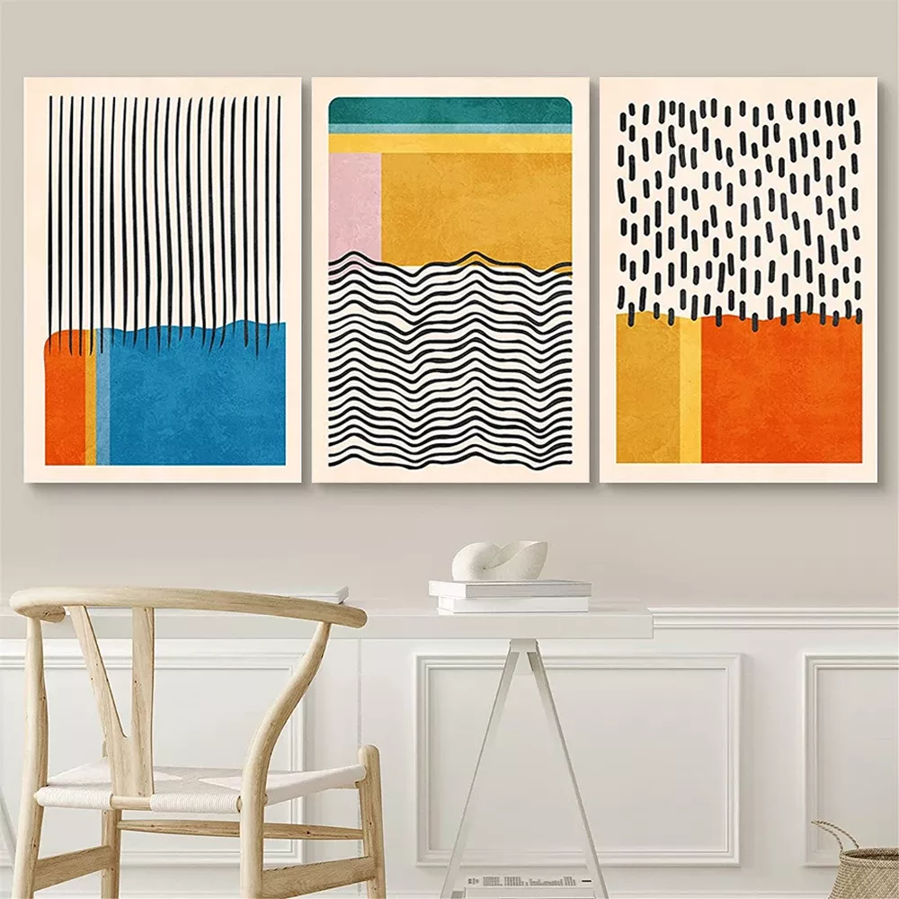 Elevate your living space with this stunning Mid Century Modern Abstract Canvas Wall Art set. Inspired by boho design and timeless modernism, these prints feature a harmonious blend of color blocks and organic shapes that instantly add a calming, artistic atmosphere to any room. Whether you’re redecorating your bedroom, adding flair to your office, or making your living room more inviting, these abstract posters make the perfect statement.