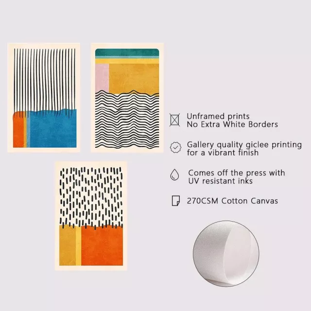This wall art set is perfect for both everyday living and special spaces where ambiance matters. Use it to brighten a neutral wall, add warmth to a reading nook, or infuse a modern vibe into your workspace. It’s especially impactful when grouped together as a focal point or displayed individually throughout your home for a cohesive, artistic theme.