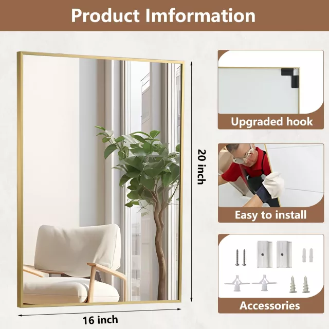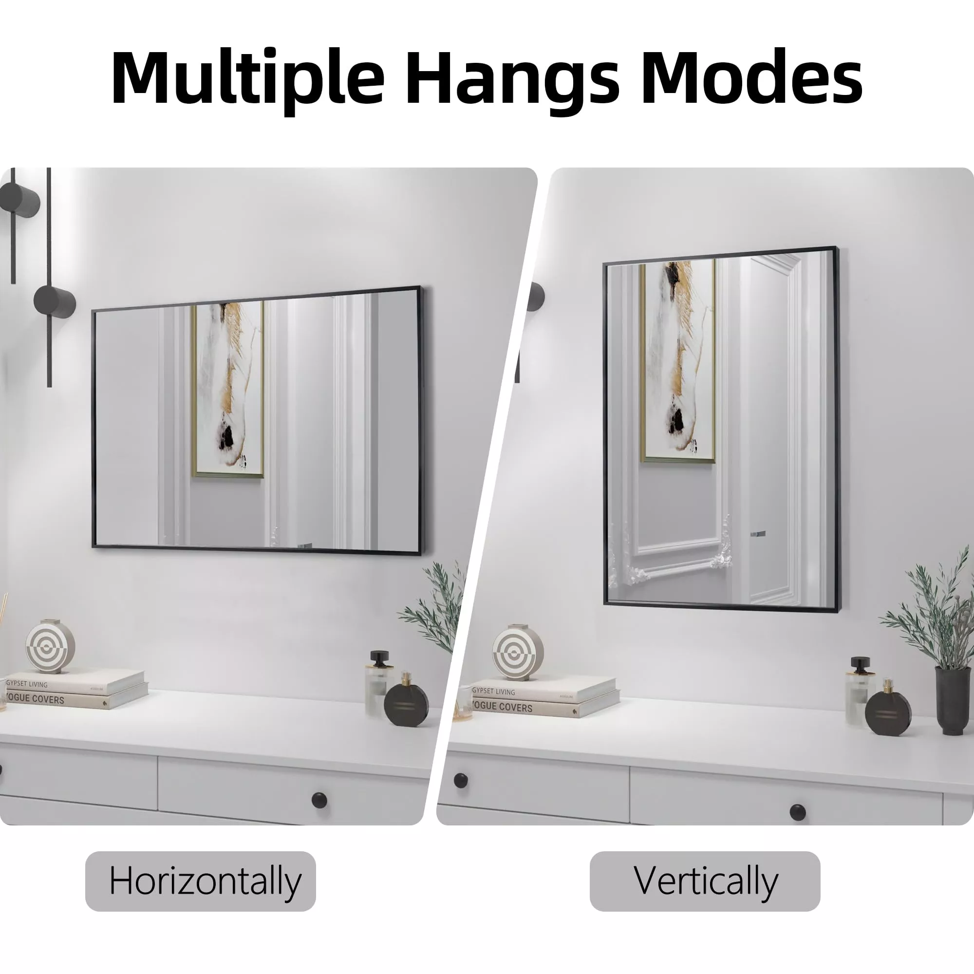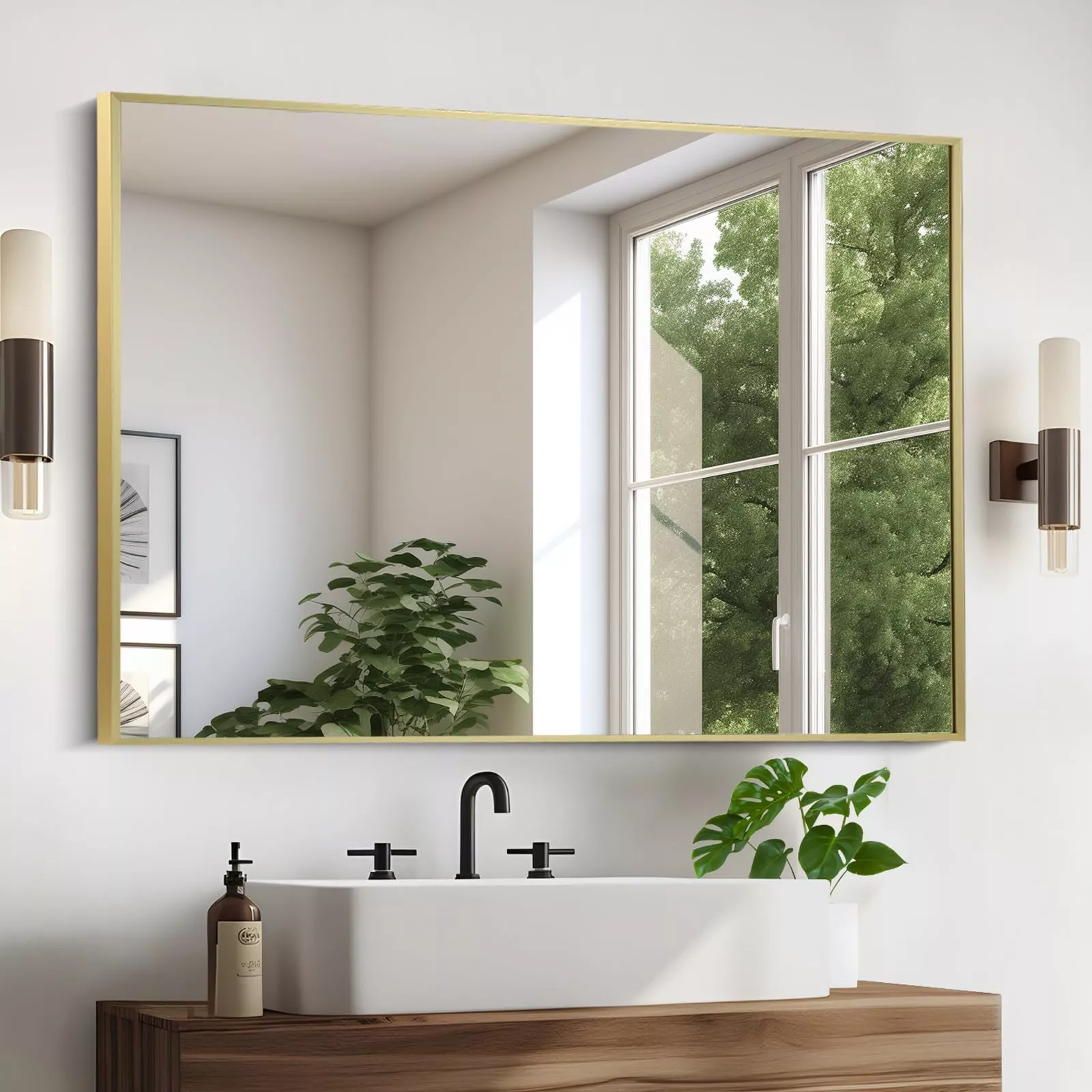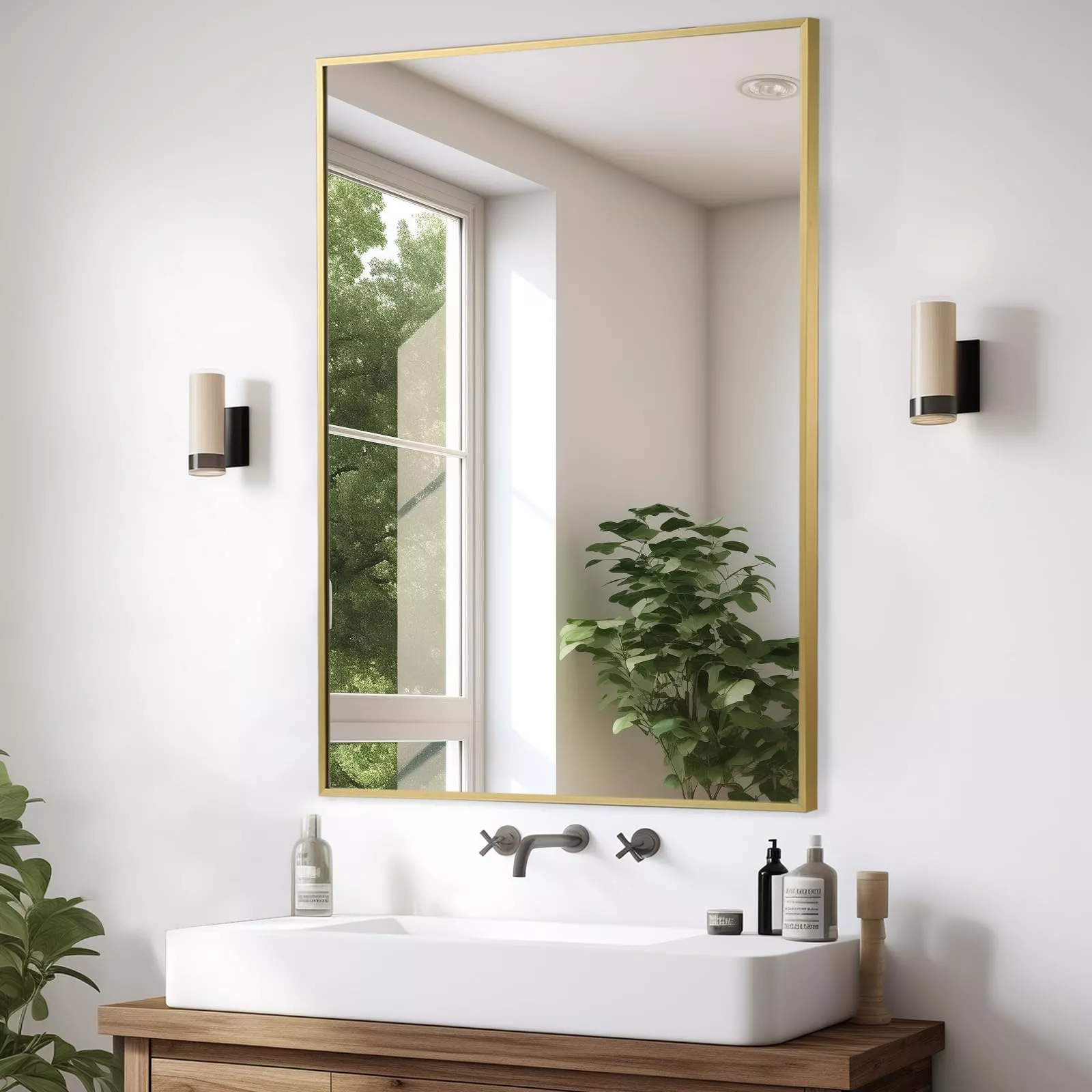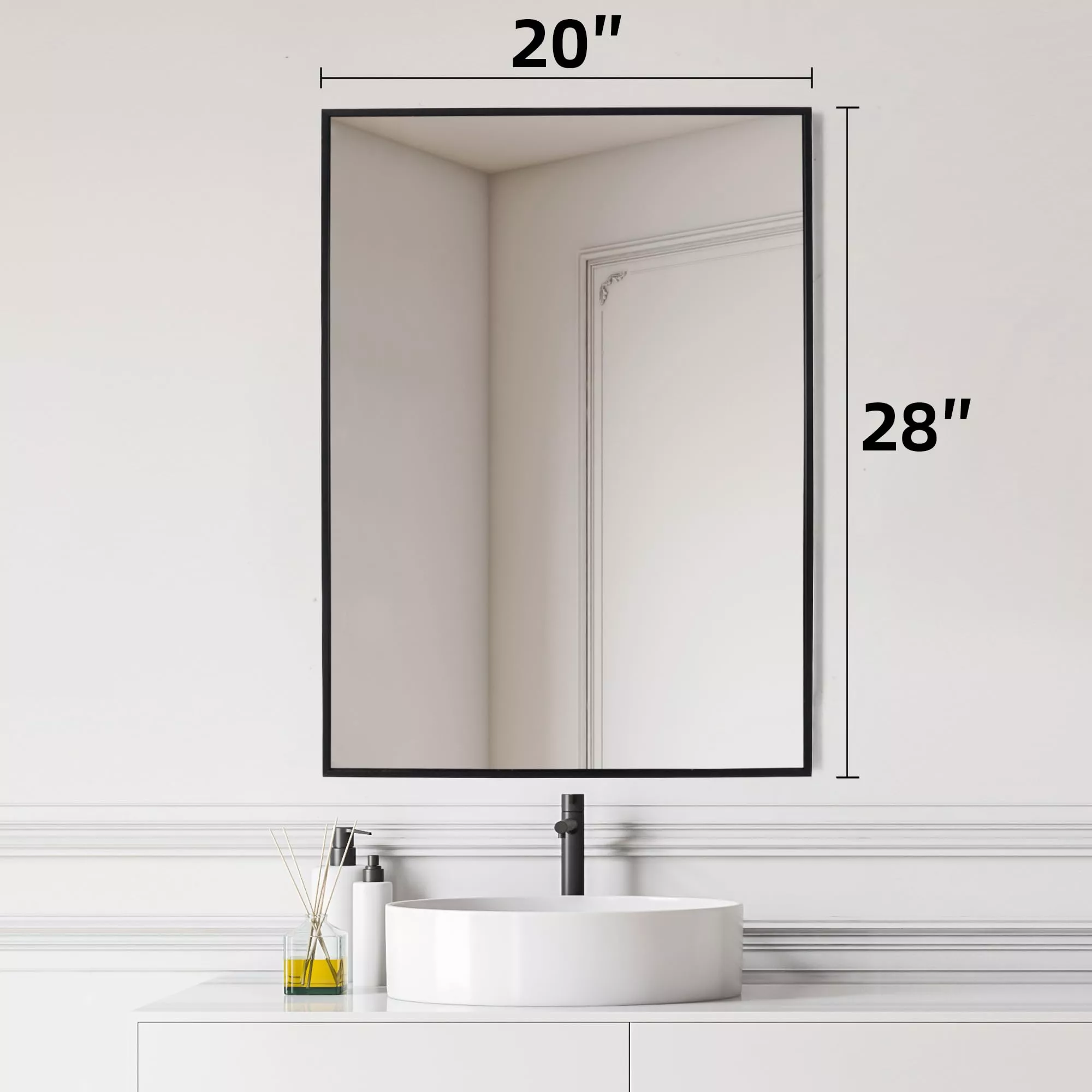 Elevate the elegance of your bathroom or living space with this modern 20 x 28 inch aluminum-framed wall mirror. Designed with clean lines and square corners, this mirror delivers a sleek and minimal look that fits beautifully into contemporary homes. Its rectangular shape and slim profile make it a natural addition to vanities, entryways, or anywhere you want to add light and depth. With a smooth aluminum frame, it blends durability with a touch of sophistication.