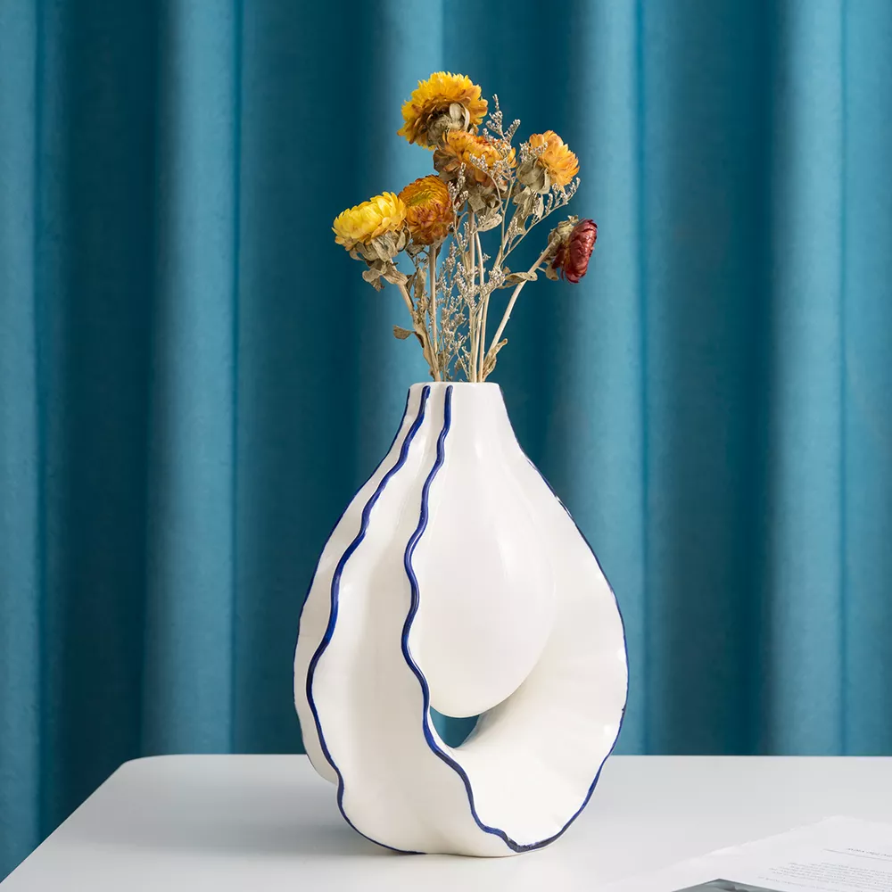 The moment I laid eyes on this uniquely shaped vase I knew I had found something special. A true blend of modernity with timeless elegance - this piece stands out wherever placed be it tabletops nightstands or shelves due to its versatility in placement options . Made from top-notch ceramics they are as durable as they are stylish offering long-lasting beauty while maintaining their glossy sheen even after prolonged use.