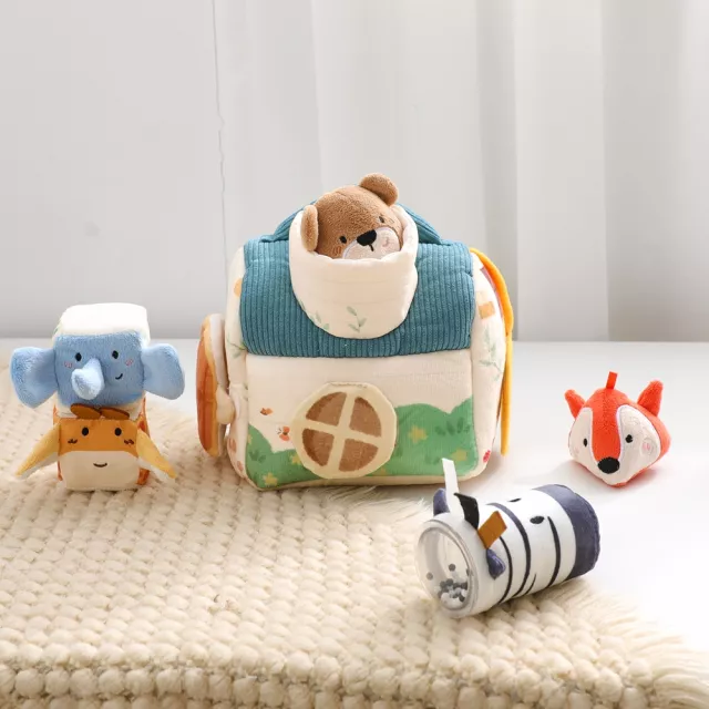 We absolutely love this toy set! These soft, plush farm animals not only provide emotional comfort as friendly companions but also stimulate sensory experiences through their gentle rattle sounds. Plus, the included farmhouse adds a layer of imaginative fun!