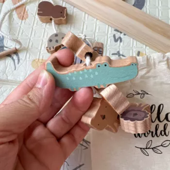 My toddler can't get enough of these adorable animal-shaped blocks! They're perfect for his tiny hands to grasp and stack up on the balance board - great practice for his dexterity. He also enjoys threading the beads which boosts his fine motor skills even more.