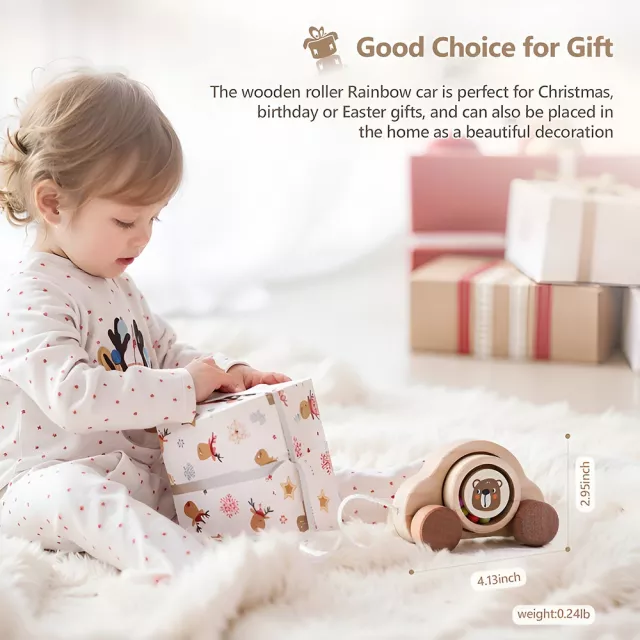 Unlike plastic alternatives, this wooden bear car brings warmth and a natural touch to your child’s playroom. It’s built to last through years of play while offering timeless educational value. The Montessori influence ensures that playtime isn’t just fun—it’s meaningful. This toy is more than a car; it’s a colorful journey into learning and imagination.