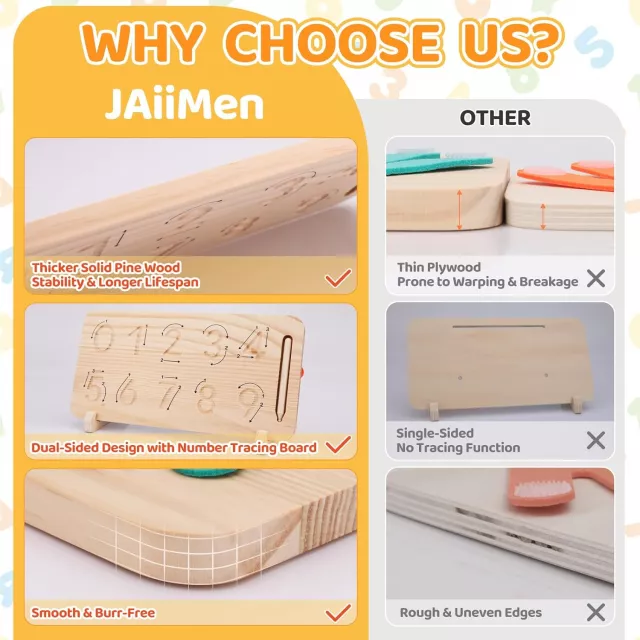 Crafted from solid pine wood, this educational toy stands out for its durability, smooth finish, and child-safe materials. Unlike common plywood alternatives, this sturdy wooden board resists wear and tear, making it ideal for repeated use in both home and classroom settings. Rounded edges and a non-toxic surface ensure safety during every play session.