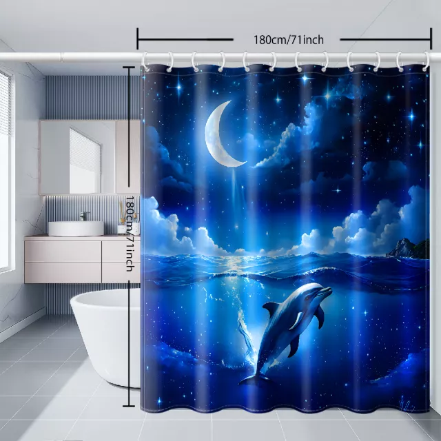 Step into your very own sea-inspired sanctuary with this moonlit blue dolphin shower curtain set. Designed to bring the calming essence of the ocean into your daily routine, this set is perfect for anyone who loves beach vibes, marine life, or tranquil, dreamlike spaces. The curtain features a graceful dolphin print under a moonlit sky, adding a magical touch to any bathroom. It’s not just a piece of décor—it’s an immersive experience that turns your shower into a peaceful seaside retreat.