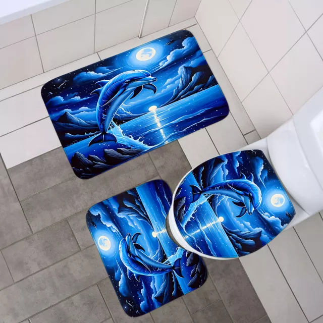 What an incredible find! The moonlit dolphin print on these items is simply stunning – who knew you could bring such beauty indoors? The fact that this is a complete set including shower curtain and three bath mats makes it even better value for money. They're made from premium polyester which means they feel great underfoot but are also super durable – perfect for busy households like mine!