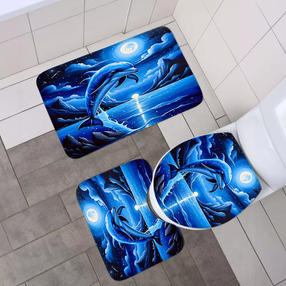 This set is perfect for anyone looking to refresh their bathroom with a touch of coastal charm. Whether you’re decorating a beach house, upgrading a guest bathroom, or adding serenity to your everyday space, the moonlit blue dolphin design creates a relaxing and inviting atmosphere year-round.