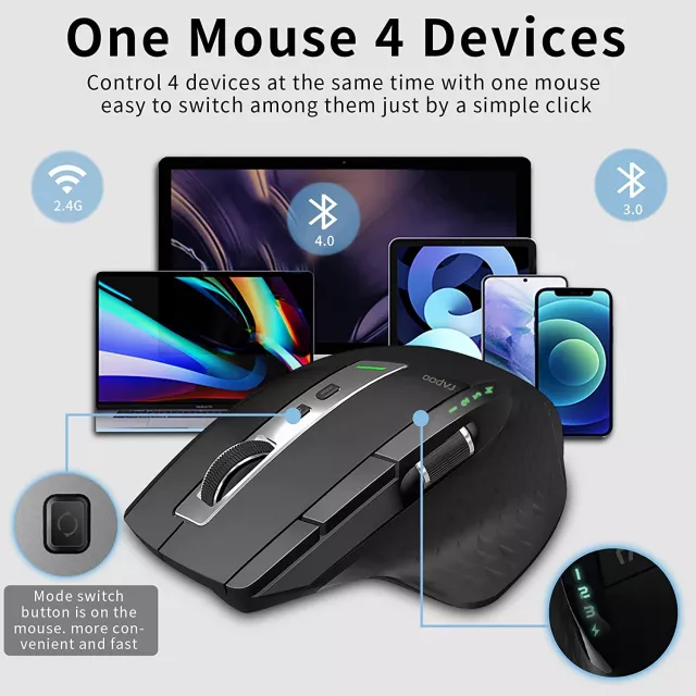 This mouse is top-notch - it's comfy, accurate and easy to connect with multiple devices. Plus, eight buttons are really handy for quick commands!