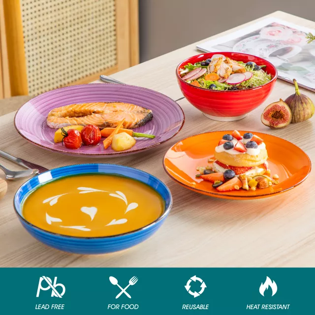 Make every meal a celebration of color and style with our Multicolor Spiral Ceramic Dinnerware Set. This handcrafted collection features a vibrant, swirling design that instantly brightens any dining experience. Made from durable, FDA-certified ceramic that’s free from lead and cadmium, it’s both safe and stylish for everyday use. Available in 12, 24, or 48-piece sets, it includes dinner plates, dessert plates, bowls, and soup plates—perfect for families, entertaining guests, or upgrading your kitchen essentials.