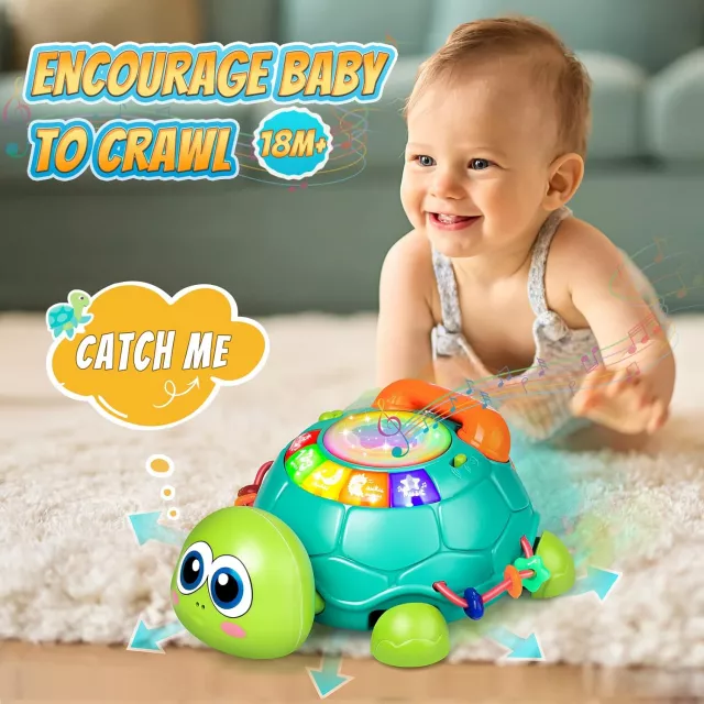 Musical Crawling Turtle Toy for Babies 6-18 Months with Lights & Sounds