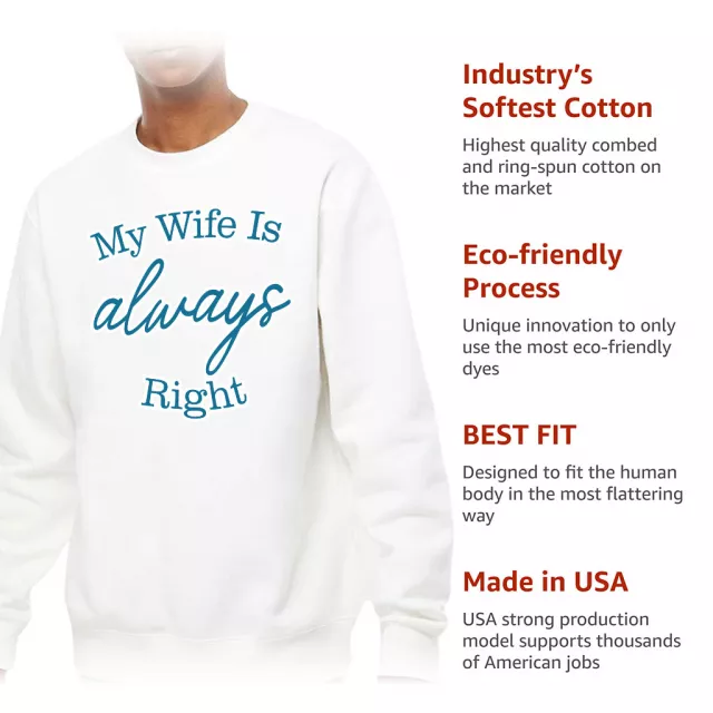 My Wife Is Always Right Midweight Sweatshirt – Cool Design Crewneck Sweatshirt – Trendy Sweatshirt