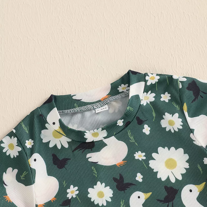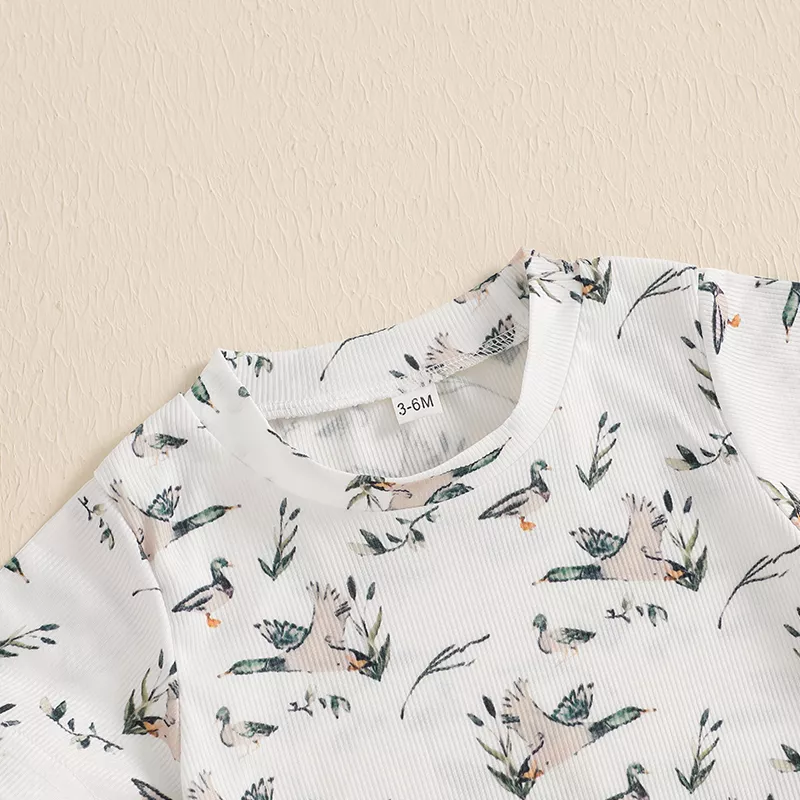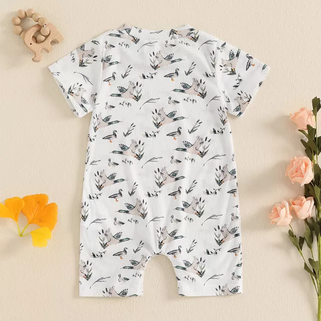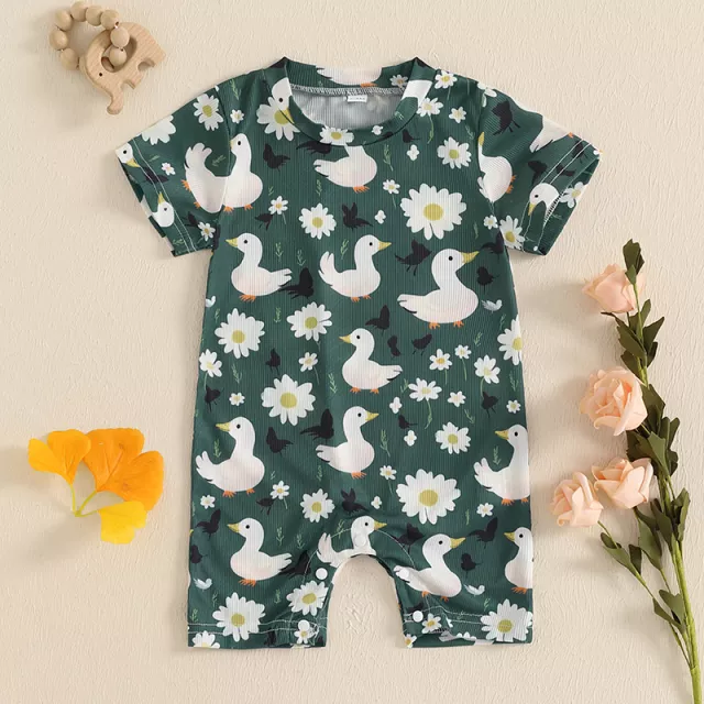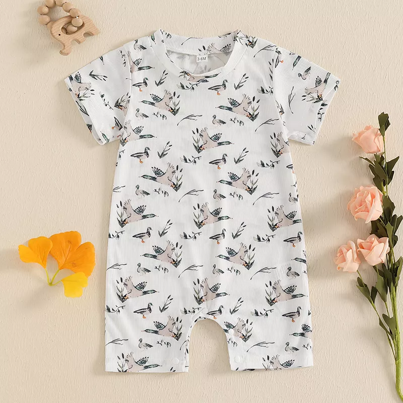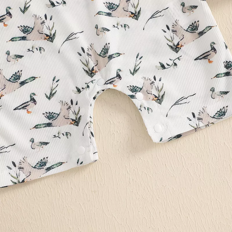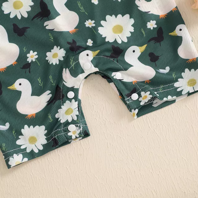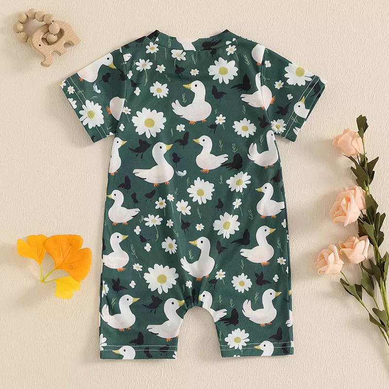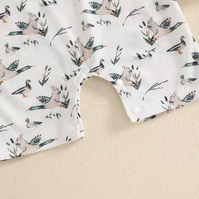 This romper is ideal for warm-weather days, family outings, casual photoshoots, or cozy indoor playtime. Its breathable, lightweight fabric keeps your baby cool and comfy during spring, summer, or early fall. The playful duck print adds a touch of charm that makes every moment picture-perfect.