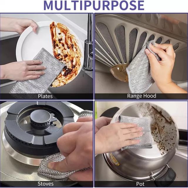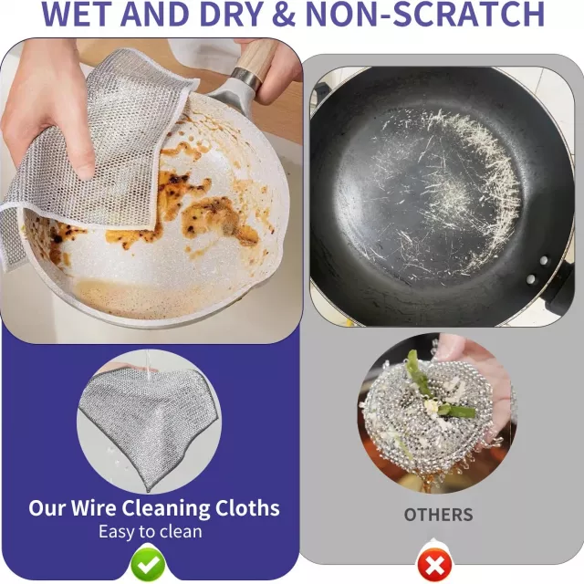 Upgrade your kitchen cleaning game with these Thickened Steel Wire Cleaning Cloths, designed to tackle the toughest grease and grime without leaving a single scratch. Made with a clever combination of ultra-fine microfiber and durable steel wire mesh, these double-layer dish rags are your go-to solution for sparkling cookware, countertops, and more. Whether you’re scrubbing pots or wiping down surfaces, enjoy effective, eco-friendly cleaning in one easy wipe.