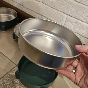 The thoughtful design of this bowl is commendable: featuring a splash-resistant edge keeps feeding areas neat reducing the usual chaos during meal times at our home significantly. Also noteworthy is how well-built this product feels; despite daily use by our energetic kitty there isn’t any sign of wear or tear on either the stainless steel part or the sturdy plastic components making this purchase worthwhile indeed!