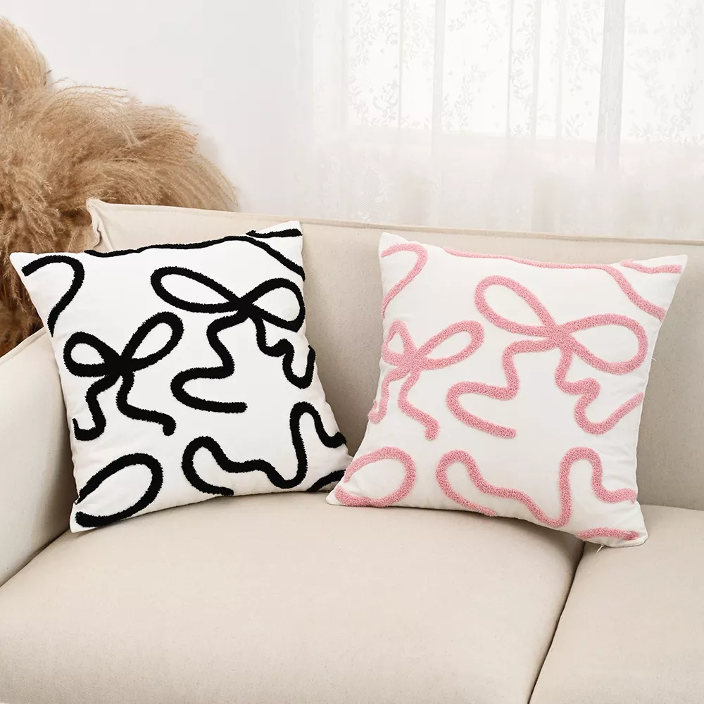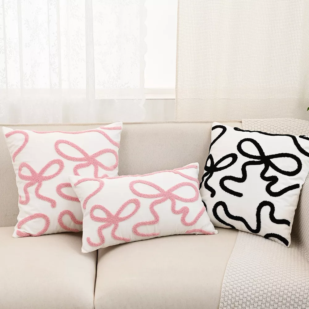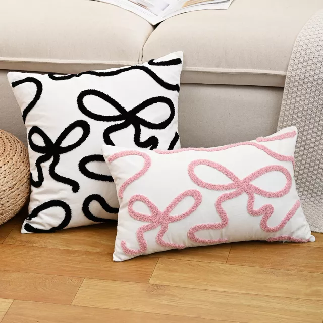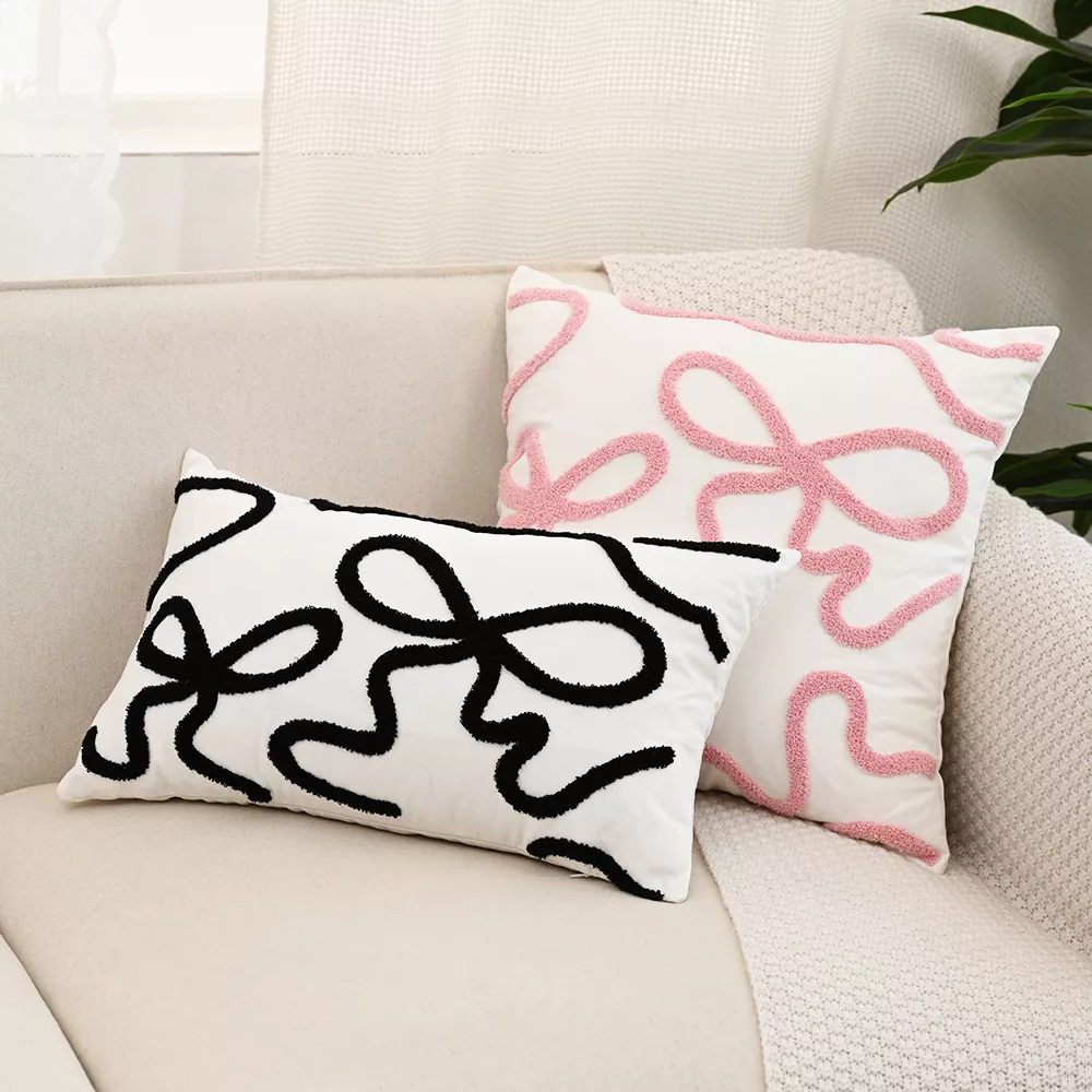 Elevate your living space with this beautifully crafted Bow Embroidered Throw Pillow Cover, designed in elegant Nordic style. Available in two convenient sizes—12×20 inches and 18×18 inches—this cushion cover brings a fresh and cozy touch to any room. Made from a soft and durable blend of polyester and cotton, it offers both comfort and long-lasting quality. The intricate embroidered bow design adds a subtle yet eye-catching detail that perfectly complements modern and minimalist interiors.